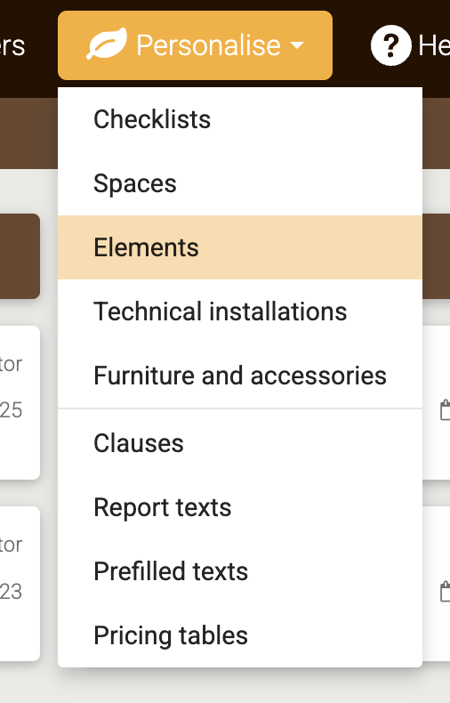 Via the “Personalise” menu in the Rental Manager, you can adjust the checklists, define the various rooms, and edit the attributes of the elements.