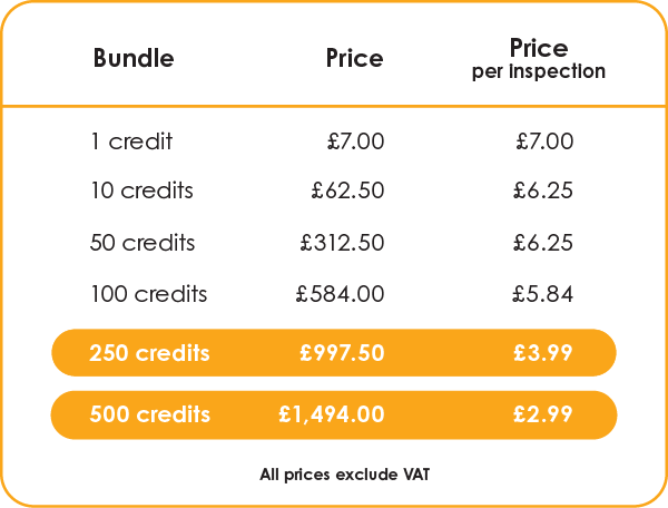 Credits – purchased individually or in a discounted bundle (recommended). You need 1 credit for each rental inspection / check-in report you complete and synchronise.